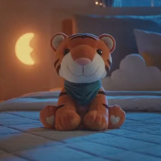 - Sheroo the Brave Little Tiger™ features a gentle sound box with two comforting audio options: a built-in message and the ability to record a personalized voice message. A discrete on/off switch allows parents to control when the sound feature is used. Batteries included.